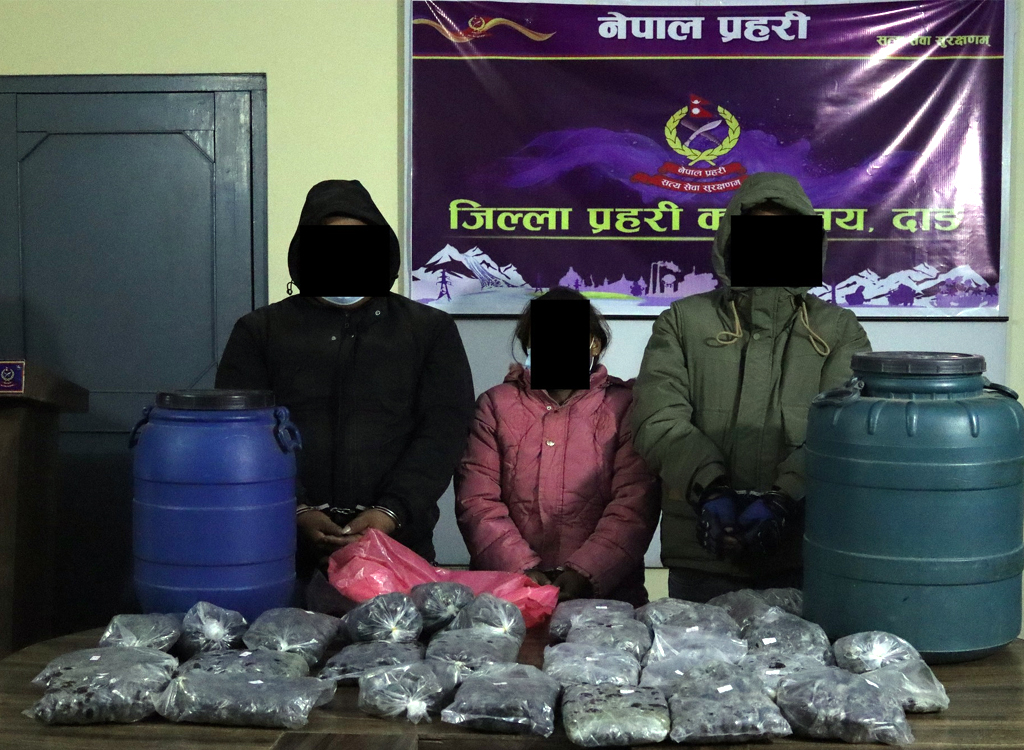 दाङ । घोराहीमा बुधबार राति २४ किलो ७ सय १० ग्राम चरेससहित ३ जना पक्राउ परेका छन् । जिल्ला प्रहरी कार्यालय दाङका डिएसपी तथा प्रवक्ता इश्वर थापाको कमाण्डमा खटिएको टोलीले घोराही उपमहानगरपालिका–१३ सिर्जनशील टोलबाट उनीहरुलाई पक्राउ गरेको हो ।