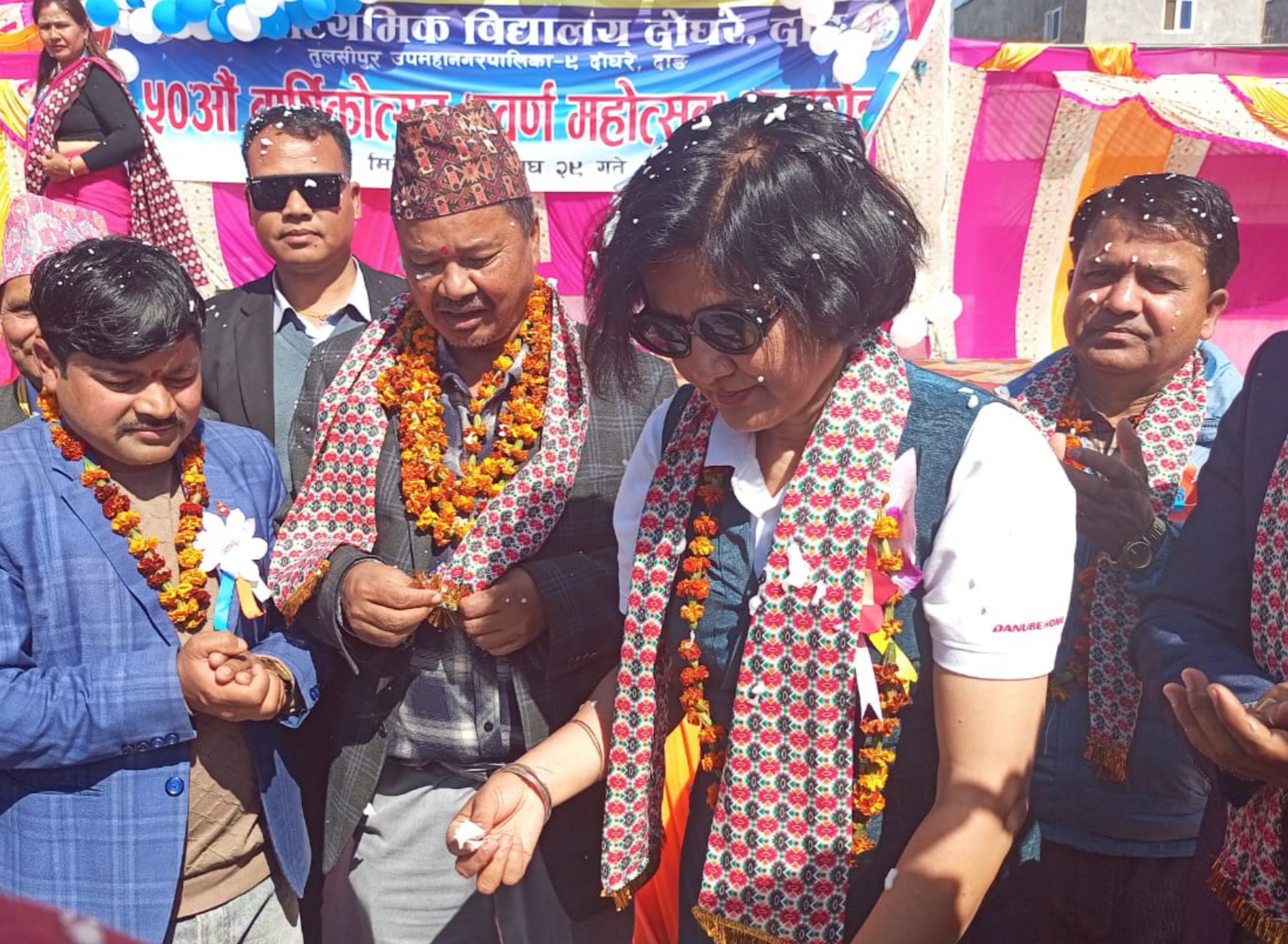 तुलसीपुर। लुम्बिनी प्रदेशका पुर्वमुख्यमन्त्री तथा नेपाली काङ्ग्रेसका केन्द्रीय सदस्य डिल्ली बहादुर चौधरीले सामुदायिक विद्यालयले अन्तर्राष्ट्रियरुपमा चिनाउने गरी विद्यार्थी उत्पादन गर्नुपर्ने बताएका छन्। माध्यमिक विद्यालय दोघरेको ५० औँ बार्षिकोत्सव (स्वर्ण महोत्सव) समारोहलाई सम्बोधन गर्दै उनले यस्तो बताएका हुन् ।
